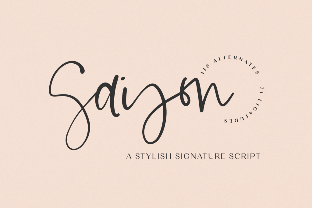 My personal favorite cursive handwriting font is Saison Script, a handwritten signature style font. Saison was inspired by the lettering I used in my own logo — I decided to make this available to my customers, since so many of you have asked the question, “What font did you use?” Now, I can tell you that it’s this one! This stylish script font features a messy, casual look and ligatures to enhance the flow of the handwriting look & feel of your project!