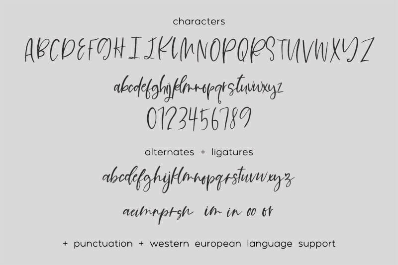 Your Impulsive Script Font purchase includes .otf, .ttf, and webfonts. Some fonts include OpenType features, best accessed through programs that support them. Like Adobe Photoshop or Adobe Illustrator — you can access them through the Glyphs panel! Also access ligatures, swashes, and other special characters through Character Map or FontBook and copy/pasted. Please understand what you are purchasing before you do so. The extra characters WILL take some hunting down if you don’t have easy-access software like Adobe products.