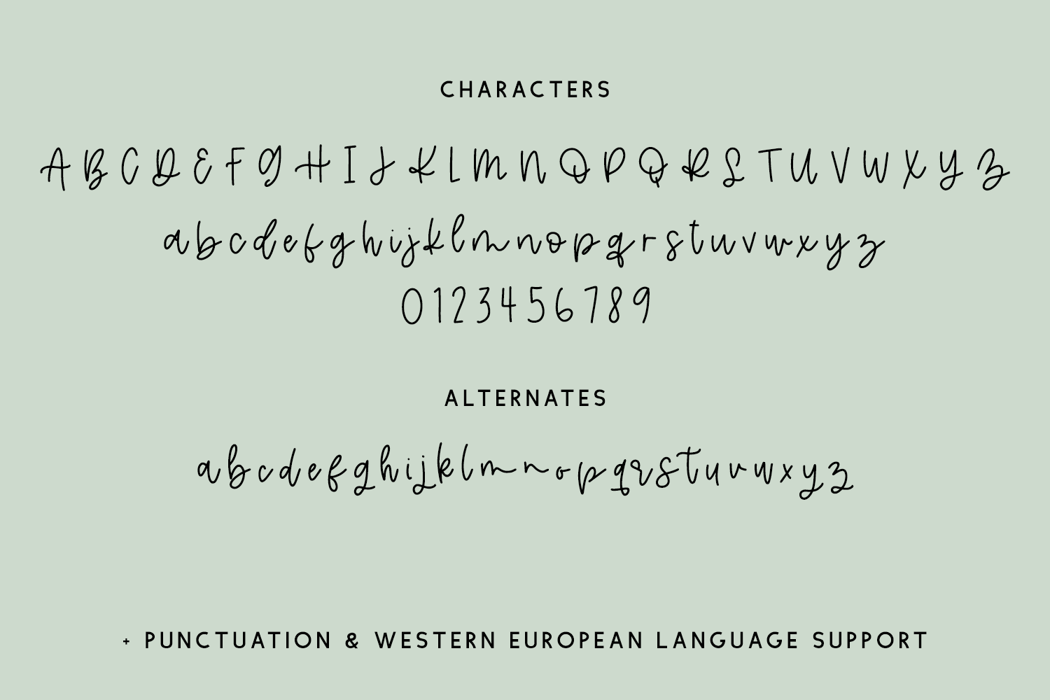 Font files include .otf, .ttf, and webfonts. Some fonts include OpenType features, best accessed through programs that support OpenType features like Adobe Photoshop or Adobe Illustrator — you can access them through the Glyphs panel! Ligatures, swashes, and other special characters may also be accessed through Character Map or FontBook and copy/pasted. It is highly recommended that you understand what you are purchasing before you do so — the extra characters WILL take some hunting down if you don’t have easy-access software like Adobe products.