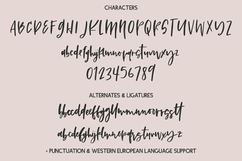 Your Promise Script Font purchase includes .otf, .ttf, and webfonts. Some fonts include OpenType features, best accessed through programs that support them. Like Adobe Photoshop or Adobe Illustrator — you can access them through the Glyphs panel! Also access ligatures, swashes, and other special characters through Character Map or FontBook and copy/pasted. Please understand what you are purchasing before you do so. The extra characters WILL take some hunting down if you don’t have easy-access software like Adobe products.