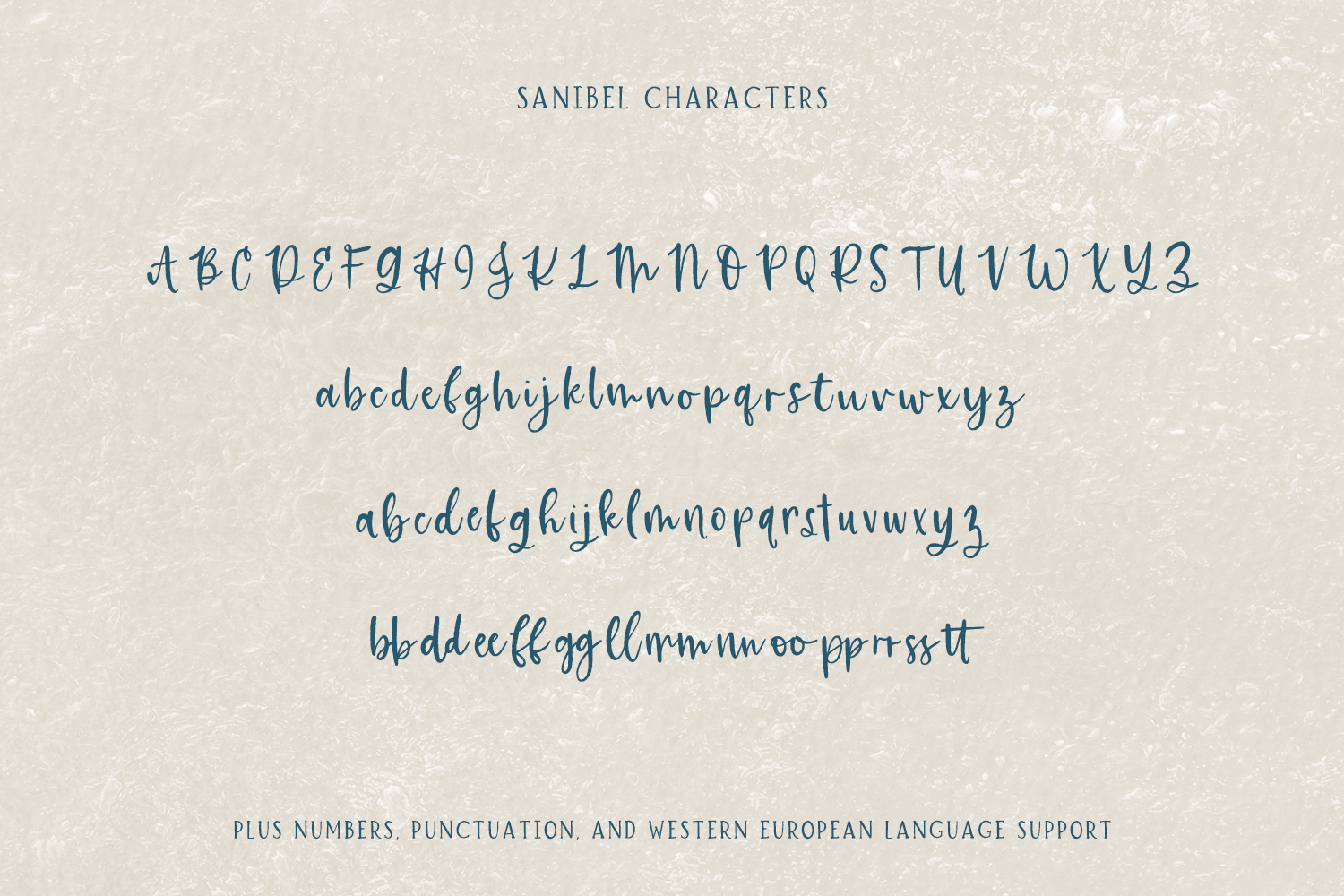 Introducing Sanibel Brush Font, a new handlettered cursive font! Featuring lowercase alternates and ligatures, you can truly customize the look & feel of your text in a few simple clicks to maximize the handlettered, varied appeal. Sanibel features a bit of a textured edge, giving it a lovely rustic aesthetic.