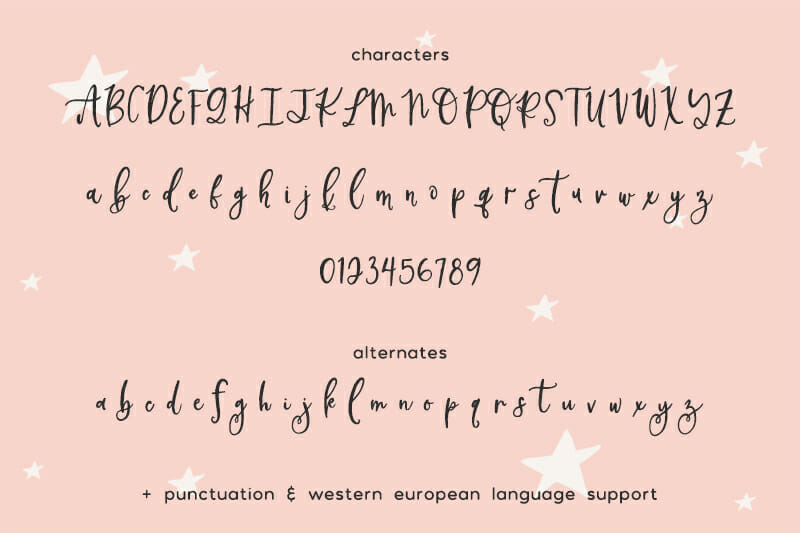 Your Sugared Dreams Script Font purchase includes .otf, .ttf, and webfonts. Some fonts include OpenType features, best accessed through programs that support them. Like Adobe Photoshop or Adobe Illustrator — you can access them through the Glyphs panel! Also access ligatures, swashes, and other special characters through Character Map or FontBook and copy/pasted. Please understand what you are purchasing before you do so. The extra characters WILL take some hunting down if you don’t have easy-access software like Adobe products.
