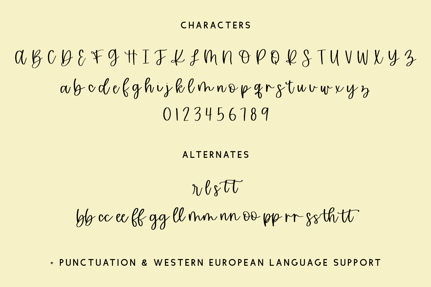 – 5 alternate lowercase characters – r, l, s, t (x2)