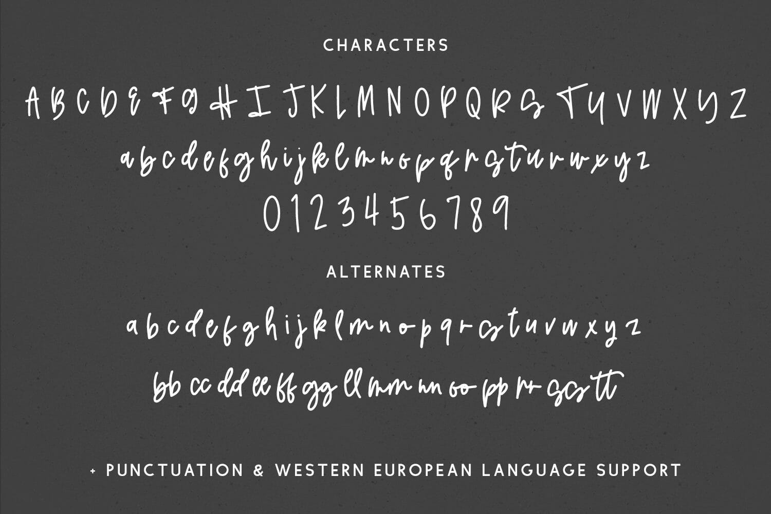 Font files include .otf, .ttf, and webfonts. Some fonts include OpenType features, best accessed through programs that support OpenType features like Adobe Photoshop or Adobe Illustrator — you can access them through the Glyphs panel! Ligatures, swashes, and other special characters may also be accessed through Character Map or FontBook and copy/pasted. It is highly recommended that you understand what you are purchasing before you do so — the extra characters WILL take some hunting down if you don’t have easy-access software like Adobe products.