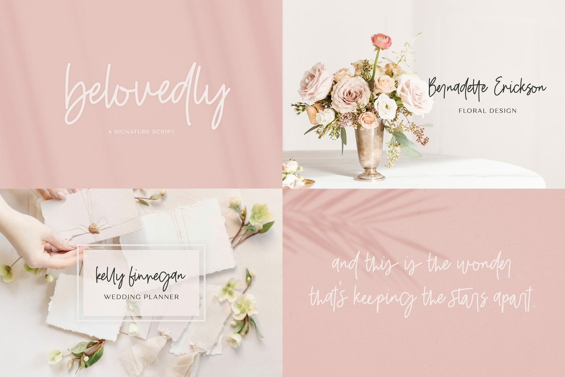 – Belovedly Script (includes 27 alternate characters, 28 ligatures)