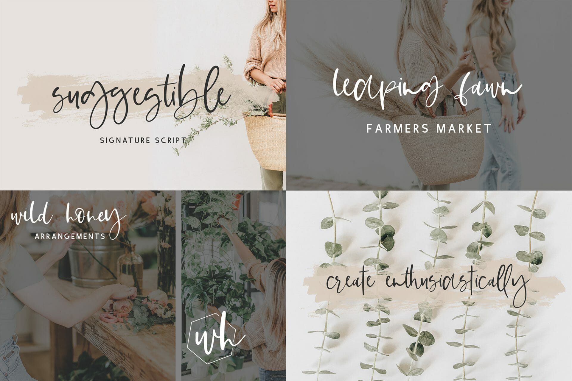 – Suggestible Script (includes 26 alternates, 14 ligatures)