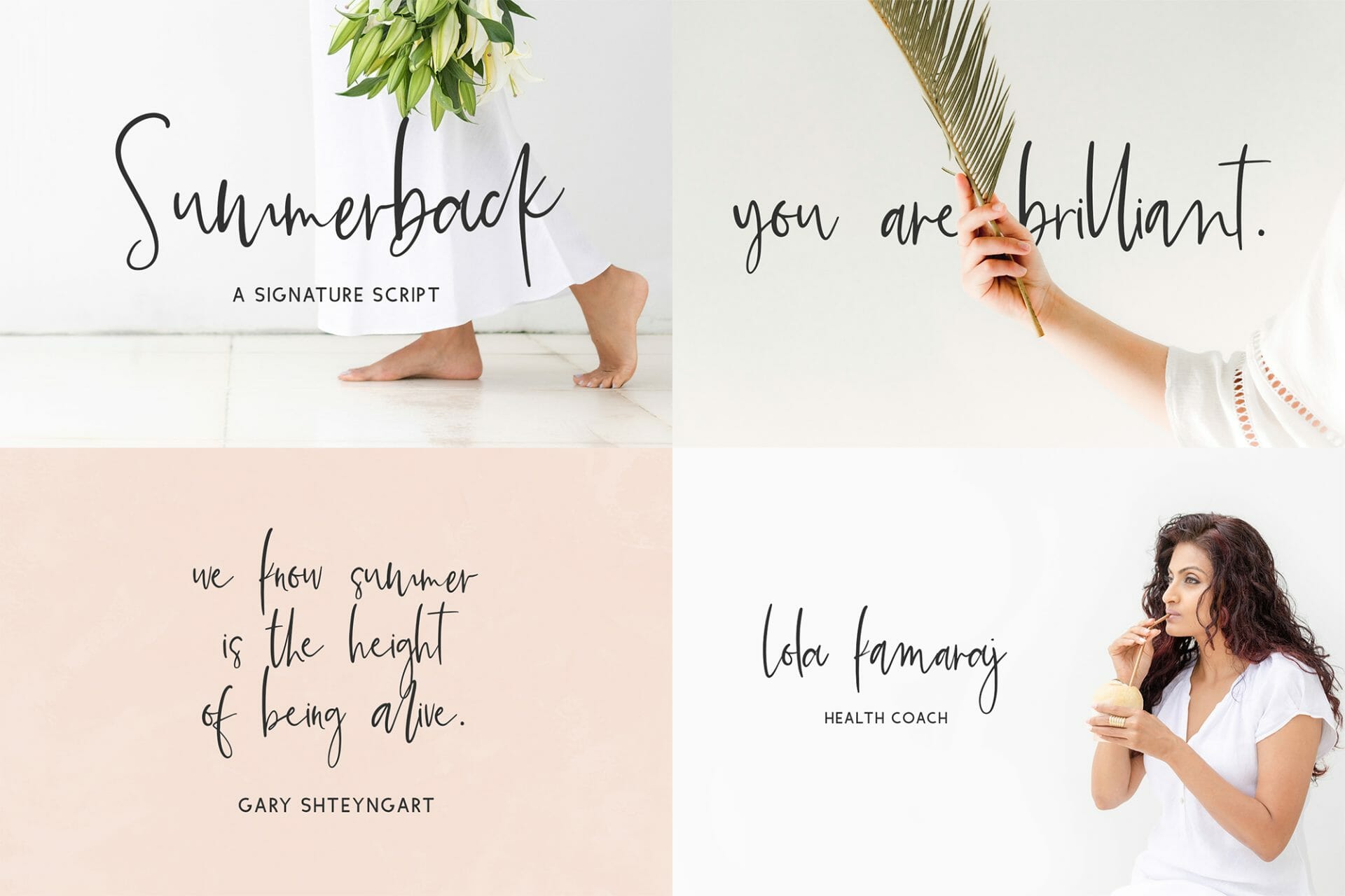 – Summerback Script (includes 26 alternates, 34 ligatures)