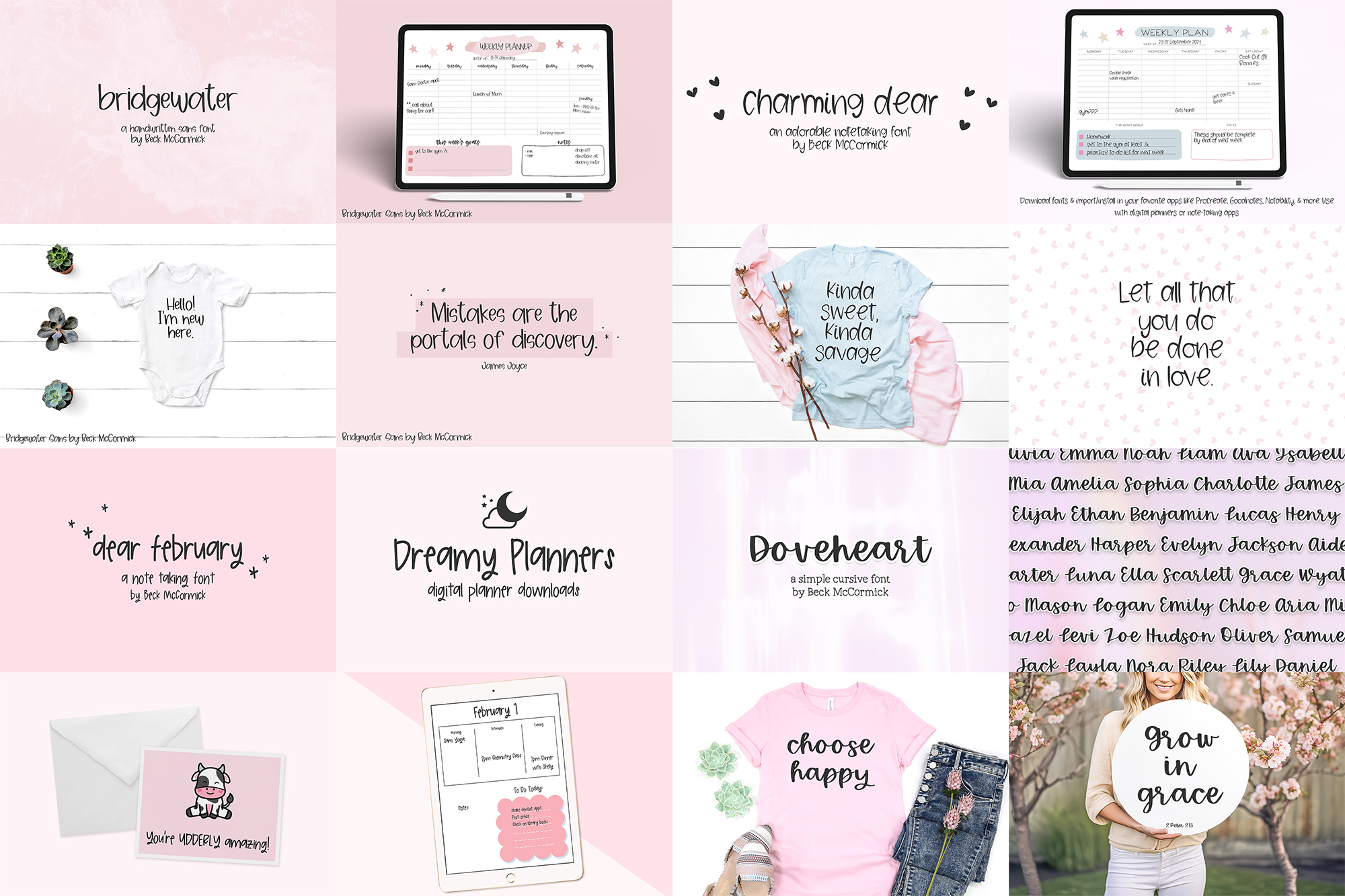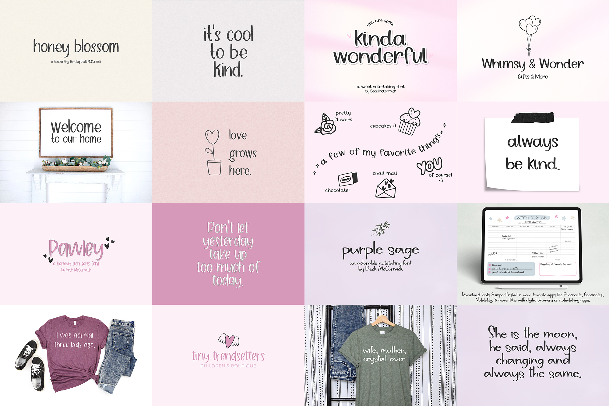 Introducing the Note Taking Font Bundle, which includes 12 fonts! This bundle was curated with the student & planner-obsessed in mind – who doesn’t love cute fonts to use in GoodNotes, Procreate, or Notability?!