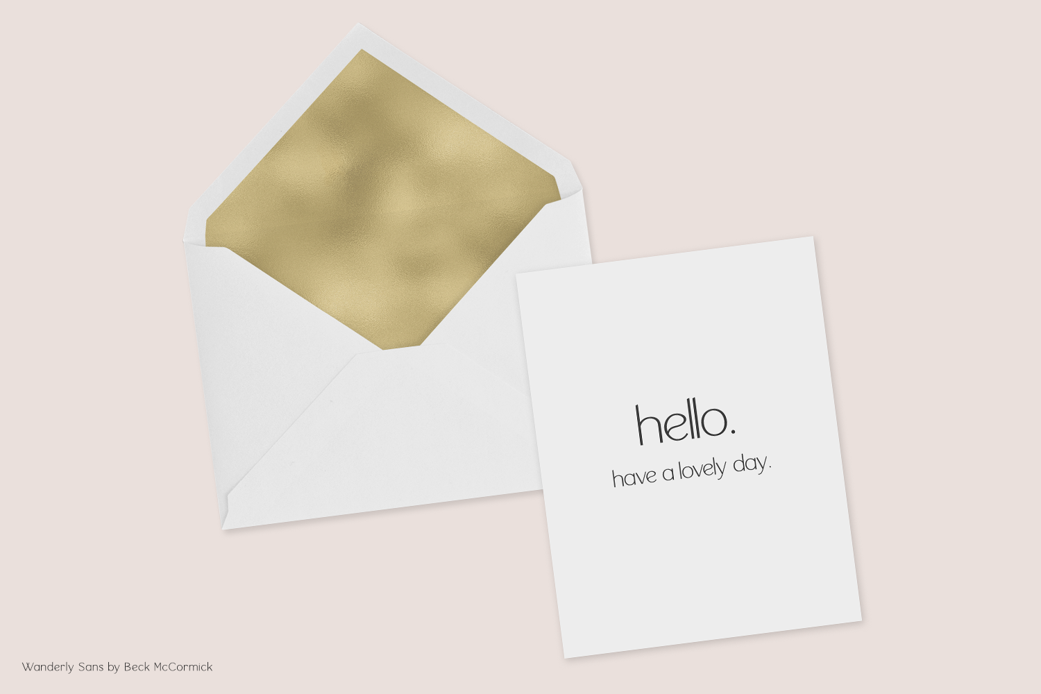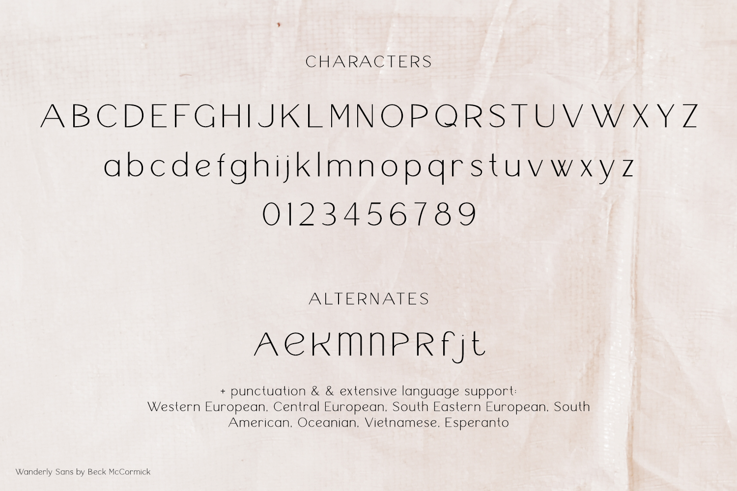 Introducing Wanderly Sans – Wanderly Sans is a sleek, modern font. Its contemporary aesthetic makes it a perfect fit for effortlessly designing logos & branding, elegant paper products like wedding invitation suites, or for displaying content on your website. Wanderly Sans can also be used for other print design like magazines and flyers or printed marketing materials. This font can also be used for digital marketing materials and social media items!
